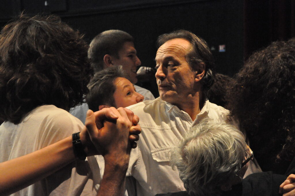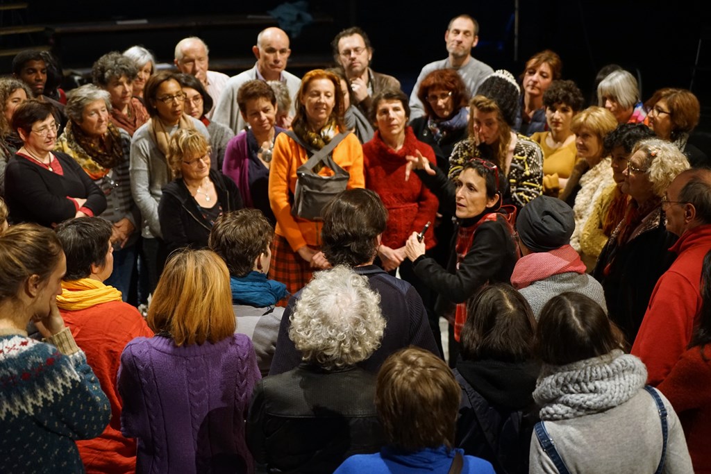 - Soit des formations des équipes à utiliser le Théâtre de l’Opprimé avec leurs usager.e.s ou partenaires. Il s’agit alors d’adapter notre enseignement aux conditions spécifiques dans lesquelles interviendra l’équipe, de l’aider à monter son projet de Théâtre de l’Opprimé, puis parfois de l’accompagner et la coacher lors de sa mise en place d’une action de Théâtre de l’Opprimé.